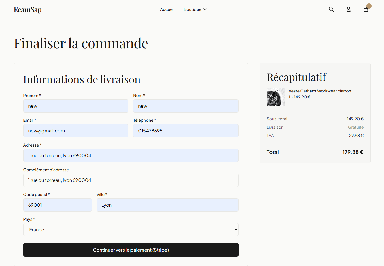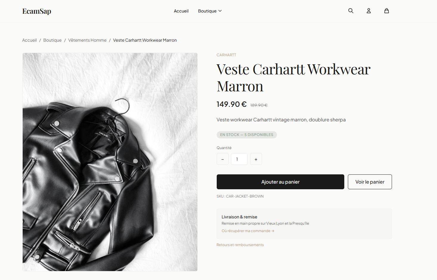 Application web ECAM SAP : galerie, section boutique vêtements et assistant chatbot. Interface moderne et intuitive pour une expérience utilisateur fluide. Projet réalisé avec Next.js et React, hébergé sur Vercel.