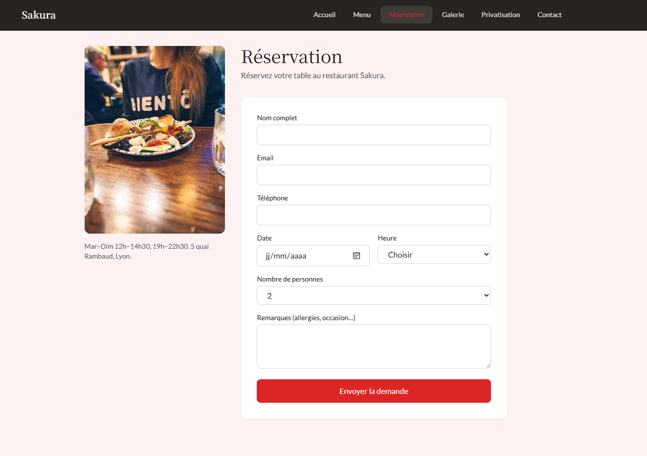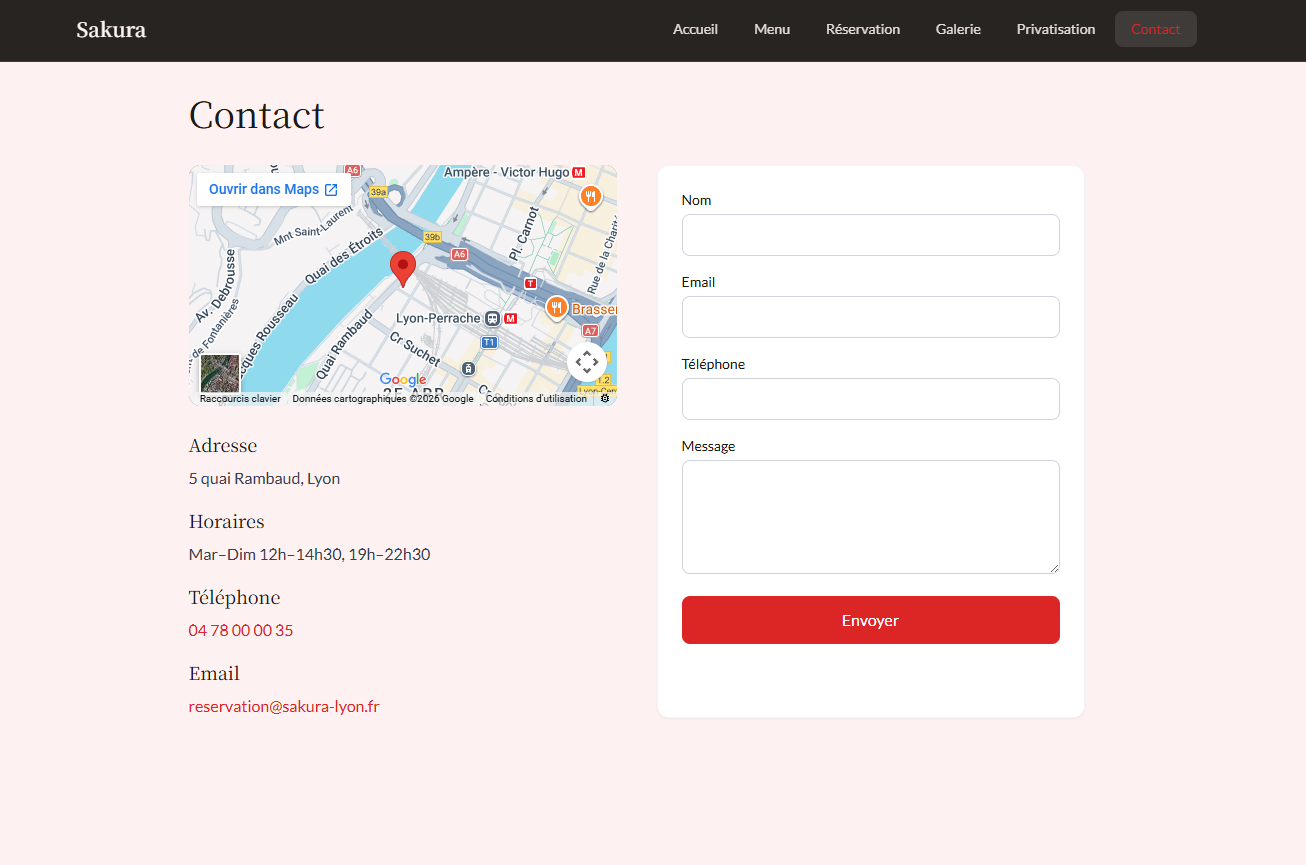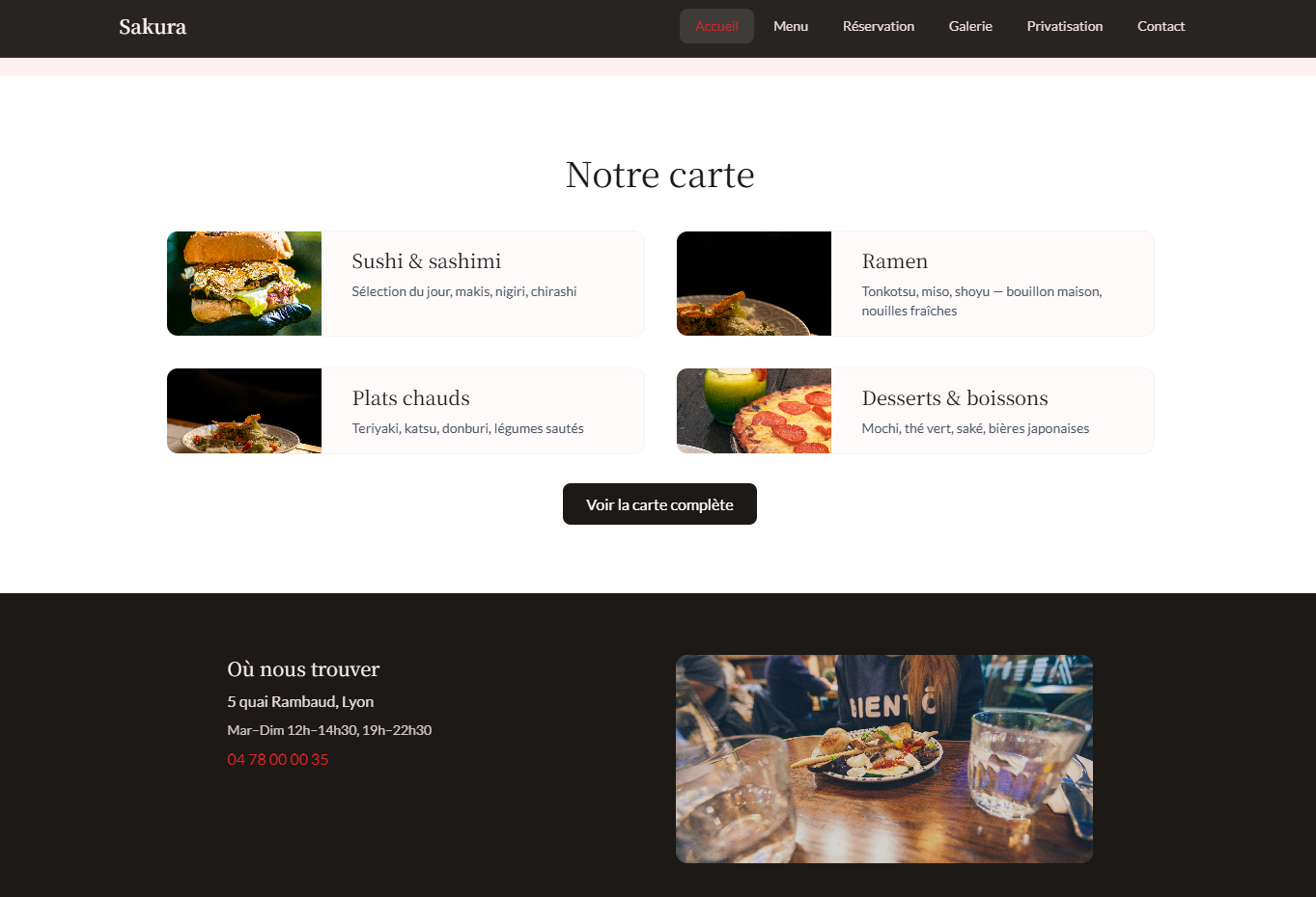Site vitrine professionnel. Design épuré, présentation des services, carte et formulaire de contact. Interface responsive et moderne. Projet réalisé avec Next.js et React, hébergé sur Vercel.
